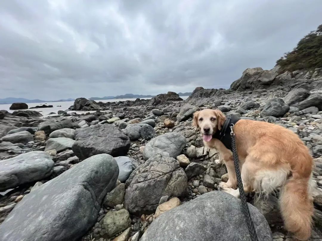 ● 爸爸带大白去海边玩安乐那天,大白不断用毛茸茸的脑袋拱着“爸爸”的手,像往常一样撒着娇,却不知道,这就是他们的最后一面了。