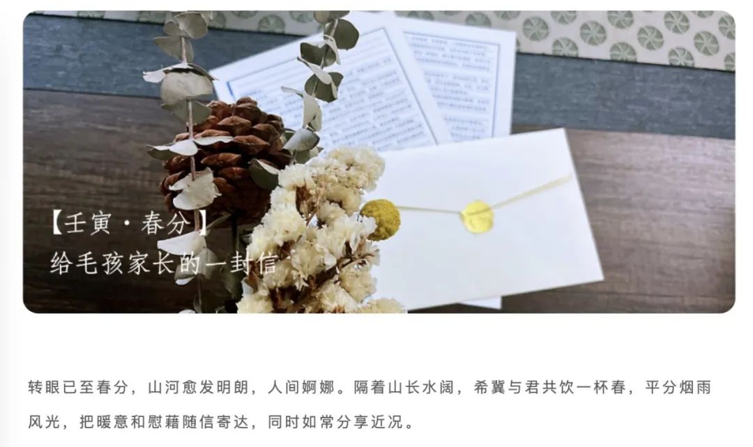 时日流转,时间平等地掠过每一个物种的生命。三年以来,白麟会在每一个节气的时候,亲笔写信给曾经服务过的小毛孩们的家长。