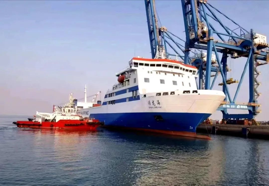 据了解,“顺龙海”轮总吨23249,造价2.6亿元,船长193米、宽26.4米,设汽车舱4层,开敞甲板兼做集装箱堆放区,可承载轿车、货车及集装箱,是新一代多用途货滚船的首制船,也是目前国内智能化程度最高的大型多用途货滚船。该轮由中远海运经营,三天一个班次,服务于潍坊-营口航线,对于提升潍坊、营口两地区域性物流枢纽地位,优化交通运输结构,促进鲁辽两省及腹地区域经济社会发展具有重要意义。