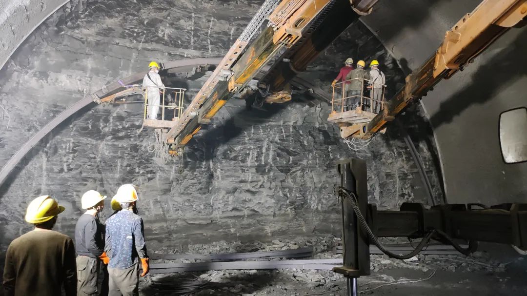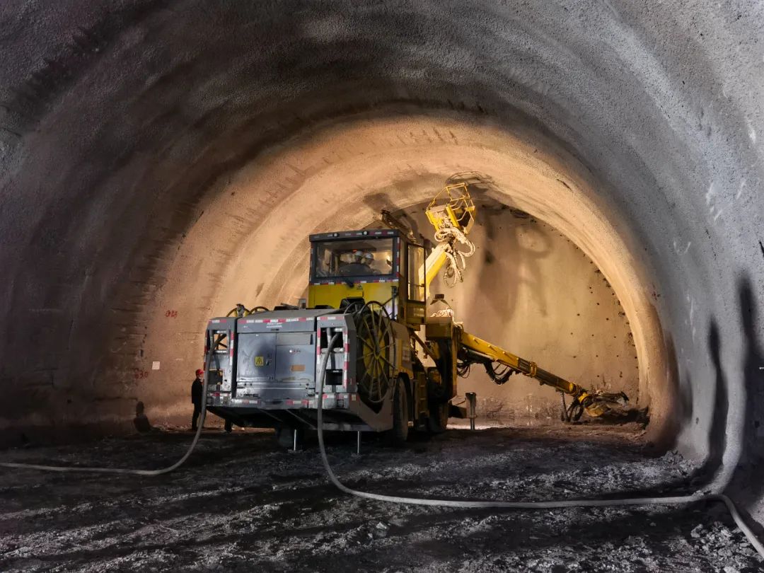 三臂凿岩台车掌子面施工西延高铁隧道设计团队针对该隧道地质条件复杂、施工风险点多、穿越洞身不良地质段等情况开展专项设计。基于膨胀土(岩)的地质特性,通过调整仰拱曲率,优化仰拱受力结构,加强初期支护,仰拱衬砌采用钢筋混凝土,控制变形,确保结构安全;洞身三号斜井工区采取大型机械化配套+大断面台阶法施工,有效控制拱部超挖,提高施工效率的同时也保证了质量及安全;在隧道穿越最小埋深38米段落时,为避免对地表建筑物的影响,提出采用电子雷管控制爆破技术,保证了地表建筑物的结构安全。
