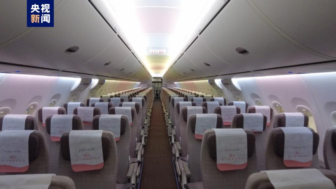 首架交付的C919为164座两舱布局,公务舱8座,经济舱156座。客舱内饰、旅客座椅、机载娱乐系统和飞机外部涂装做了定制化设计