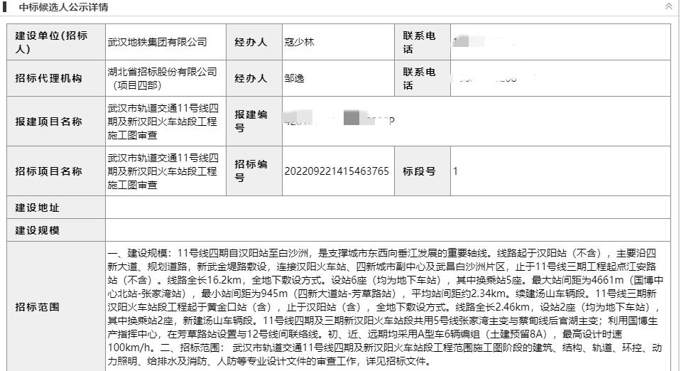 从武汉市公共资源交易中心官网发布的《武汉市轨道交通11号线四期及新汉阳火车站段工程施工图审查》(以下简称《公告》)招标公告获悉,轨道交通11号线四期自汉阳站至白沙洲,是支撑城市东西向发展的重要轴线。