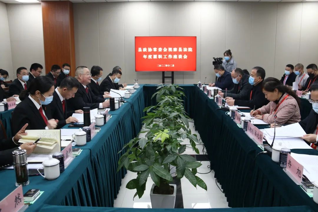 院党组书记、院长秦长春对程途主席一行来院视察调研表示热烈欢迎,重点围绕“维护社会平安稳定”、“法治护航经济发展”、“全面贯彻司法为民”、“助力乡村振兴战略”、“深化司法改革创新”、“打造高素质法院队伍”等方面,汇报了彭水县法院2022年度履职工作情况。听取汇报后,与会政协常委谈感受、提建议,就法院“执行难”问题、“案多人少”矛盾及法治化服务保障营商环境等方面提出了建设性意见建议。