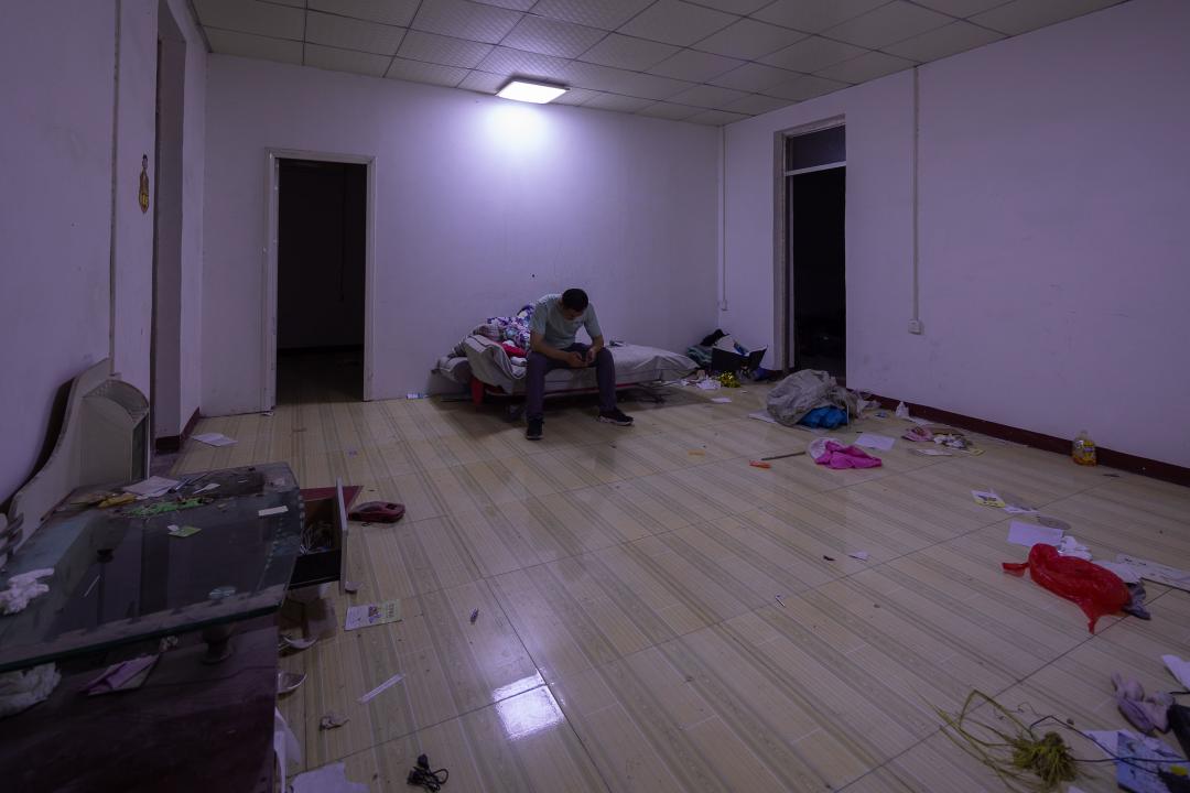 我记得那是2020年4月30号的一个晚上,他家是毛家村最后一个拆迁户,他叫孙家全——老二。他在村里和自己的老屋子过了最后的一夜。为了记录他在村子里最后一夜的过程,我从白天就跟他一起,当天上午老二把妻子和两个孩子安置在租来的屋子里,能用的家具基本上也都在我们的帮助下搬走了。到了夜里十点,孙家全请帮他搬家的朋友们吃过晚饭,独自回到了老屋。家里空空如也,整个村子就剩下他这一栋房子没有拆,由于家里还有两个空调,他得提防晚上会有拾荒人给偷走,于是,他就准备一个人在这个老屋子里睡最后一个晚上。