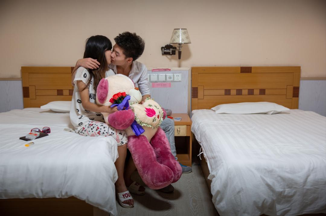 除夕的下午,68岁的刘家芳在家陪着90岁的婆婆包饺子。2018年2月随着这个拍摄过程的不断深入,我也获得了很多日常难以想象的拍摄线索,超越我们想象的生活的细节。比如我拍摄的一对情侣,他们通过QQ刷附近人的方式相识,他们都是孤独寂寞的外乡打工人,认识第十五天之后,在国道边的小旅馆开了间房,共同度过他们第一个七夕情人节之夜。我在拍摄过后,曾问过他们是否打算带对方回老家。他们说没有这个想法,彼此生活习惯有很大的差异,并不想和对方长期的生活。