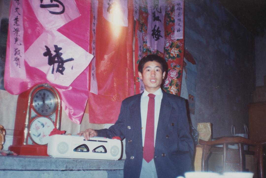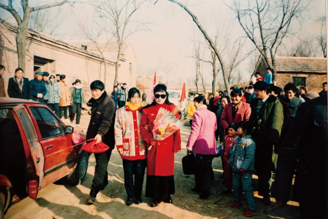 在这期间我收集了很多老照片,这些照片大部分都是八九十年代的。因为从摄影的角度而言,那个年代的傻瓜相机使用彩色胶卷被人们广泛接受,摄影才开始走进普通人的家庭。收集的照片中有他们到城里逛公园的留影,他们提着皮包穿上自己最好的衣服,也有村民买了村里第一台机动三轮,也有村民家里有了第一台彩色电视机,还有村里最早的组合家具,农民生活水平提高的过程都有记录。这样的照片我收集了很多,还有一些婚礼场景照片。我们会发现在当时的毛家村,录音机、摩托车都是奢侈品,甚至连婚礼上吃一桌丰盛的酒菜,都是值得被记录下来的。更别说孩子们出去和大人们逛公园,只是村里几户非常富裕的人才可以做的事情。年轻人的婚礼从穿着大红色的衣服坐着借来的红色桑塔纳嫁到村子里来,到后来他们花七块钱到城里拍摄一张婚纱照。再到90年代初,村民已经开始组团出去旅游。还有村里有财力的老板赞助村里的文化活动——春节舞龙。