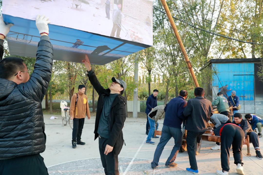 李彬(中)和张琦玲(左)两位大姐在帮我布展。2019年10月小树林的展区,需要租用大量的桁架。市场价格很贵,而且运费比租金还高。正当我一筹莫展的时候,村委会的徐光勇大哥告诉我说,有个庆典公司的仓库就租了村里的厂房。等联系到公司负责人,打开仓库大门的一瞬间,我就觉得像进了阿里巴巴宝库一样。我们需要的东西,这里应有尽有。更巧的是,仓库距离我们的展场不到100米的距离,连运费都省下了。庆典公司尹经理看到我们的展览内容,还有意晚回收了三天桁架,等于给我们的租金打了折扣。在我们制作过程中,由于好多照片都是由宣纸打印的,我们预算不够,基石影像的杜国营经理说,你有多少钱就给多少钱,我们全力支持。当时这些展览的一个个难题,真把我急得够呛,但在朋友们的热心帮助下,所有的问题都在最后一刻得到了完美的解决。
