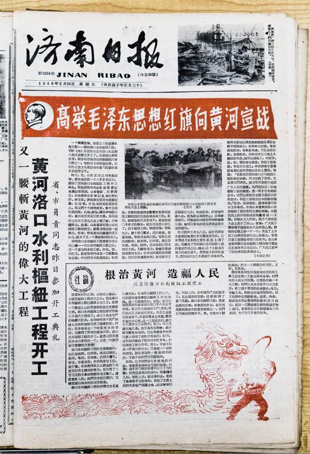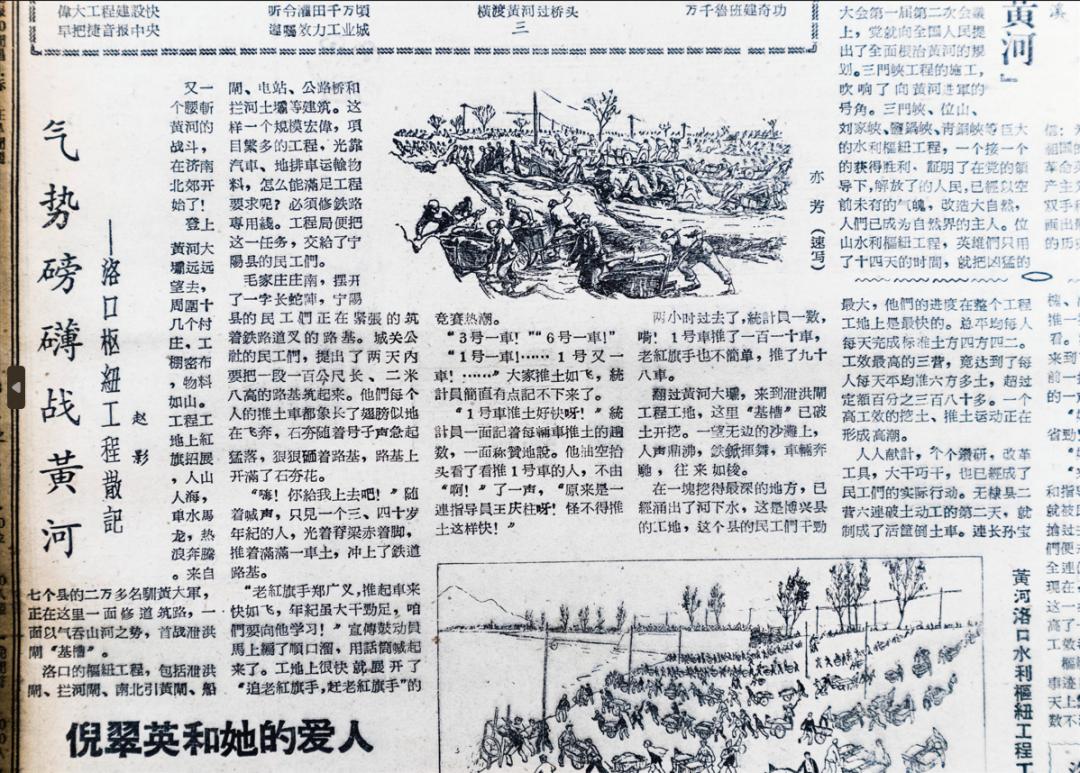 到了2019年5月,我开始在山东省图书馆期刊阅览室查阅过往期刊,试图找到和毛家村相关的历史文献。我在那儿查了很久,到了6月20日下午,我在一摞泛黄发脆的《济南日报》合订本中查阅到1960年2月25日第一版刊登的名为《黄河泺口水利枢纽工程开工》的新闻稿和新闻照片。并且在第三版,有一篇《气势黄河,气势磅礴,战黄河泺口枢纽工程散记》的通讯报道。这是当时在苏联援建下的一项重要的黄河水利发电灌溉的水利工程的报道。这些报道和孙传荣老人撰写的《毛家村近代变革》中有关洛北水利工程上午记述:在毛家村南侧、东侧展开修建临时铁路线的细节是相印证的。有幸找到这些资料,让我非常兴奋,我迅速地将这些版面翻拍留存。