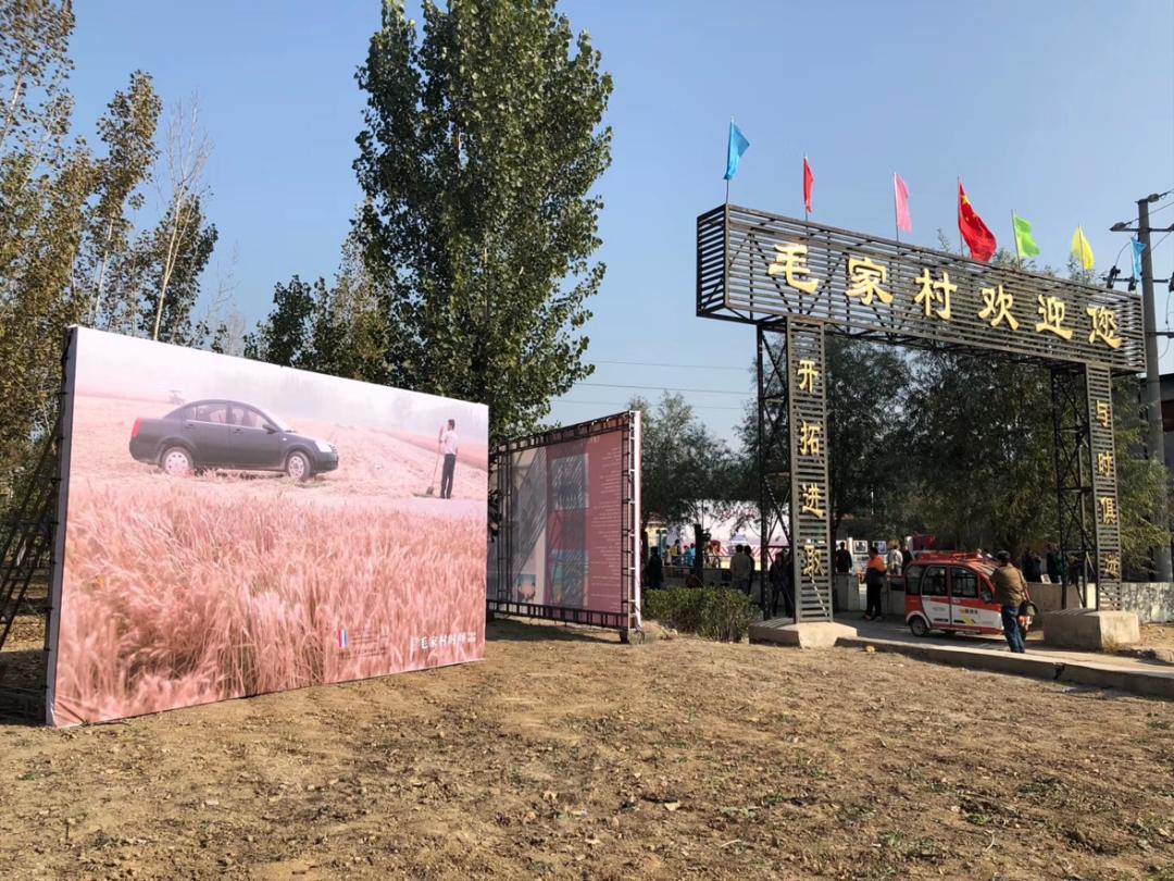 准备工作日程表布展前,在基石影像做照片的耐久性测试的过程中,所有的照片都是直接打印在毛家村制作家具的板材上面,因为这是毛家村里最多的东西。29日一早,刘宇老师、日越和我三人就来到了毛家村南头的文化广场。村里的文化广场就是两片水泥地面的篮球场,以及一个小主席台组成的小广场,平时供村民们娱乐,兼顾开会。村里听说我请来了北京的大领导,村委会很重视,先行区也专门派人到村里搞接待。那天正好村里收玉米。广场上晒满了玉米穗子,黄澄澄的一大片。面对空旷的广场和满脑子的照片,我心里一点谱都没有。只能依靠我的策划人日越,好歹他见多识广,一手拿着卷尺,一手拿着草图,就开始给刘宇老师汇报,这儿有什么东西,那儿有什么构想。