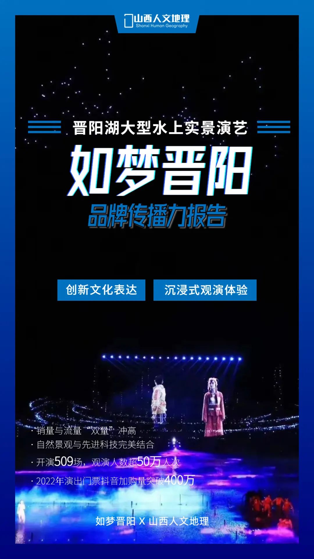 从文旅产业的大背景下看,旅游演艺将文化融入旅游消费之中,兼顾了娱乐性和文化内涵,是文化和旅游的粘合剂。《如梦晋阳》是如何成为一座城市最具吸引力和感召力的讲解员和形象大使?在内容、传播方面有哪些表现?本期山西人文地理(sxrwdl)带您了解晋阳湖大型水上实景演艺《如梦晋阳》品牌传播力报告。