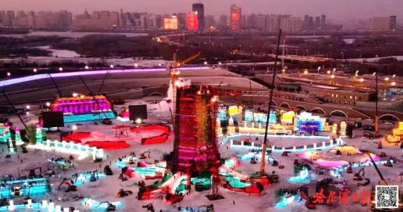 经过连日昼夜奋战,12月8日21时左右,第24届哈尔滨冰雪大世界园区主塔“冰雪之冠”完成封顶,主塔进入最后的细节打磨和灯光调试阶段。