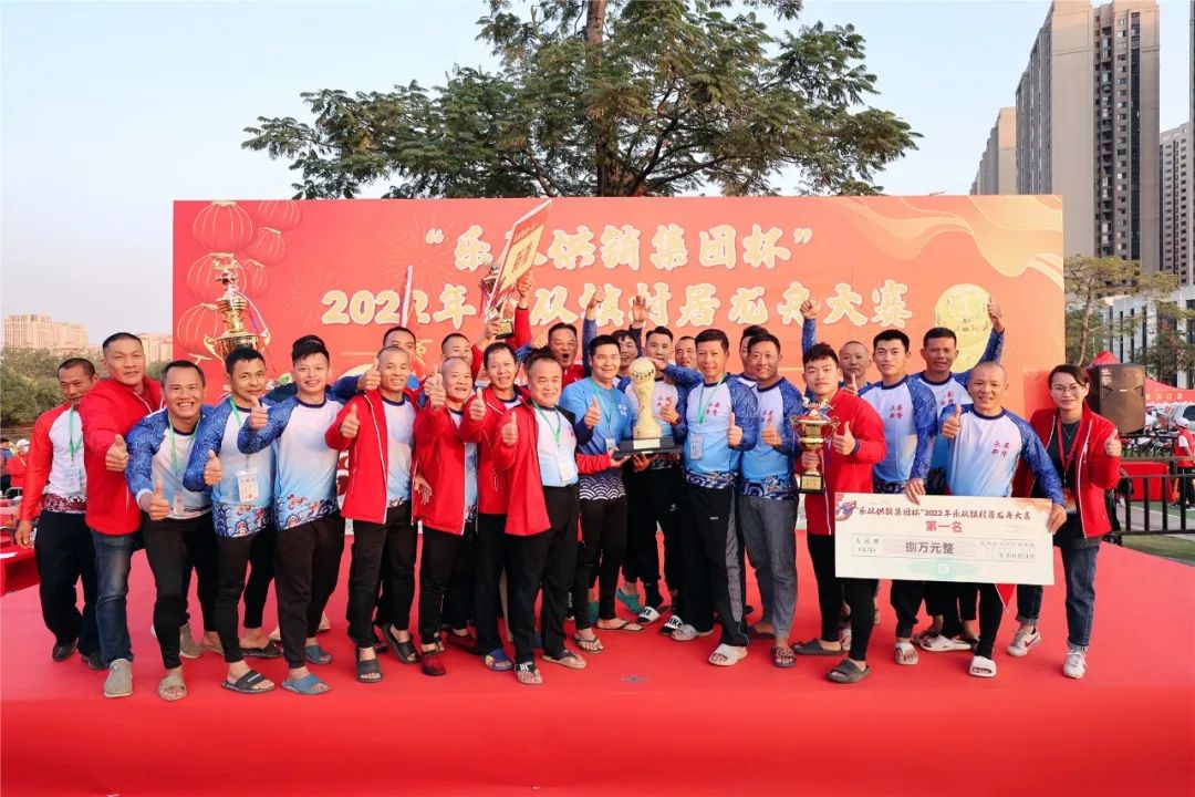 永安新隆钢铁世界龙舟队比赛中两项赛事结束,永安新隆钢铁世界龙舟队总成绩排名第一,成功问鼎本届赛事冠军,实现大赛“四连冠”,大闸村龙舟队、水藤陆通物流园龙舟队分列二、三名。按照规则,永安新隆钢铁世界龙舟队获得与金杯合影的权利,如果新隆村在未来两年内继续蝉联乐从镇村居龙舟大赛冠军宝座,则可以永久拥有大赛金杯。