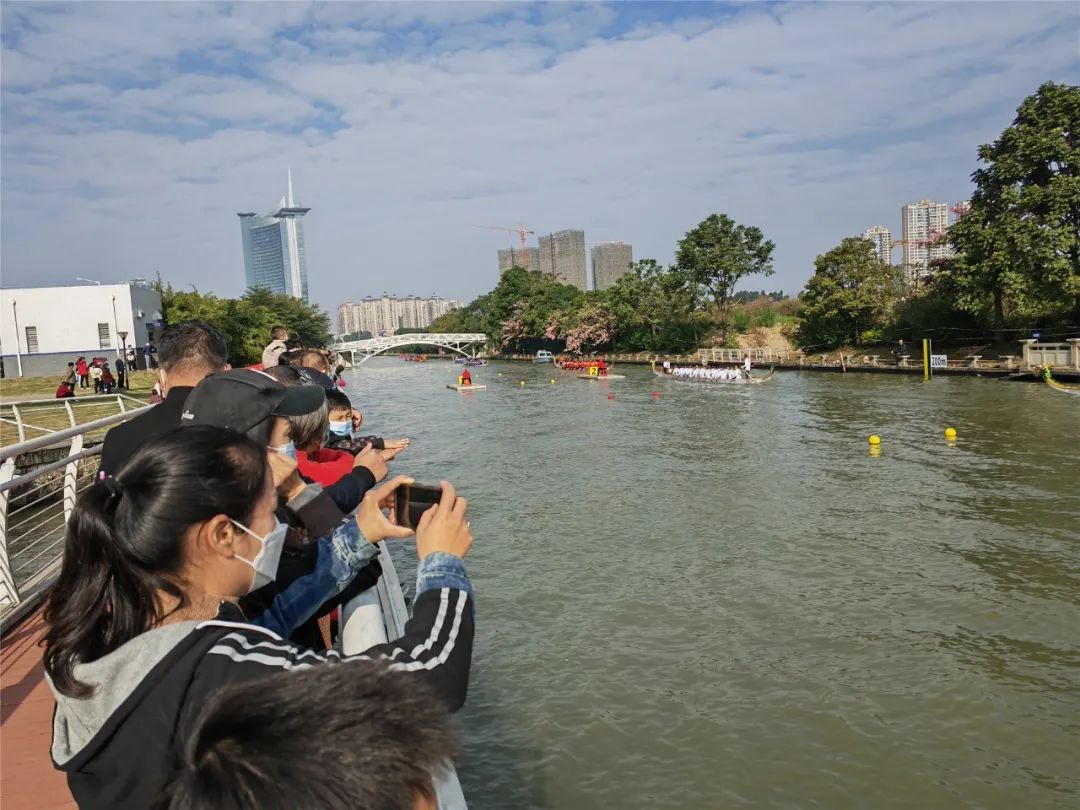 精彩的赛事,吸引了不少市民前来围观,河岸边,欢呼声、雀跃声此起彼伏。不少市民拿起手机,记录下精彩的瞬间。