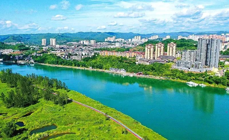 蓝天白云下的蓬安县相如湖国家湿地公园(周亮 摄,图片来源:四川日报)