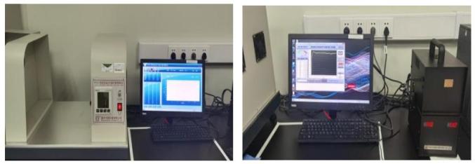 左、右图分别为温升、发射率项目测试过程对于一般样品,远红外发射率不低于 0.88,温升不低于1.4℃时,才可称其具有远红外性能。