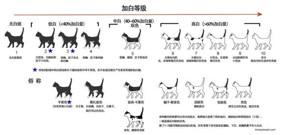基因不同剂量产生的毛色效应|Messybeast白色斑点在身体上的位置是随机的,但是也遵循着一定的规律,即白色斑点总是倾向于分布在远离背部的区域。这是因为它的黑色素细胞虽然移动得快,但它们分裂的速度又很慢,腹部、爪子等地方没有产生足够的黑色素,于是便成了白色,也是人们常说的长着长着没“墨”了。