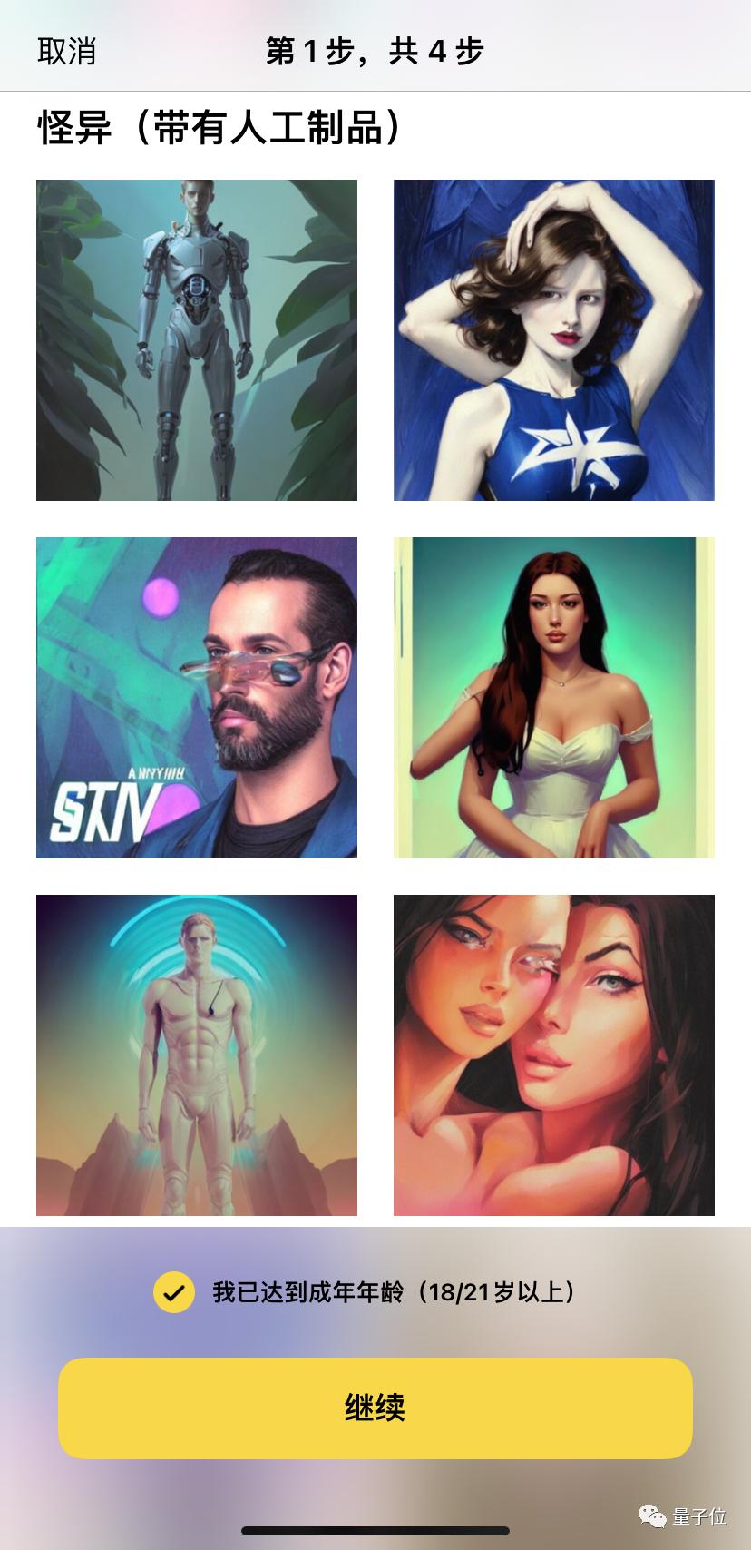 正式开始制作前,APP会先打个提醒“生成效果是有风险的”,出现一些缺陷扭曲是正常情况。还要求使用者年龄达到18岁以上(不过APP Store上的年龄分级只有4岁+…)。
