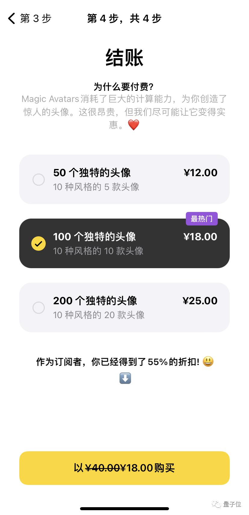 然后就是结账体验了。单次生成的价格从12-25元不等,结果都是10种风格,但是数量会不一样。