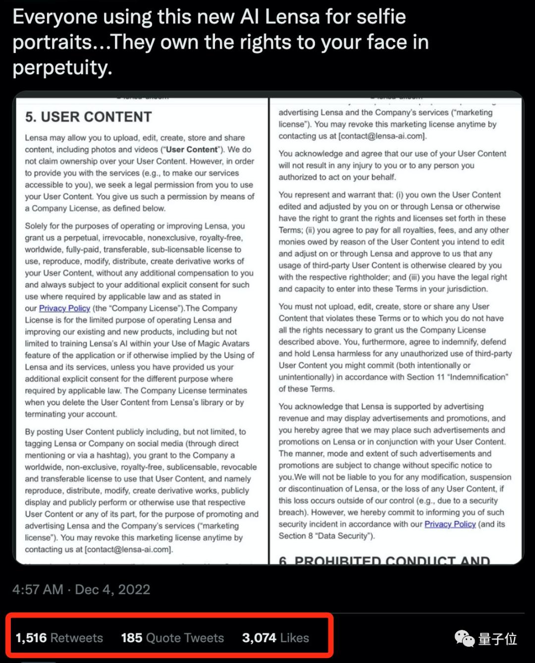 还有人仔细查看了APP的隐私条款,怀疑他们有权长期使用用户的画像,并在推特上迅速引发热议。