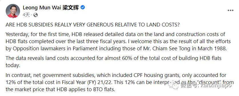 12月9日,议员梁文辉发FB推文表示,新加坡的预购组屋真的有很慷慨的给补贴吗?