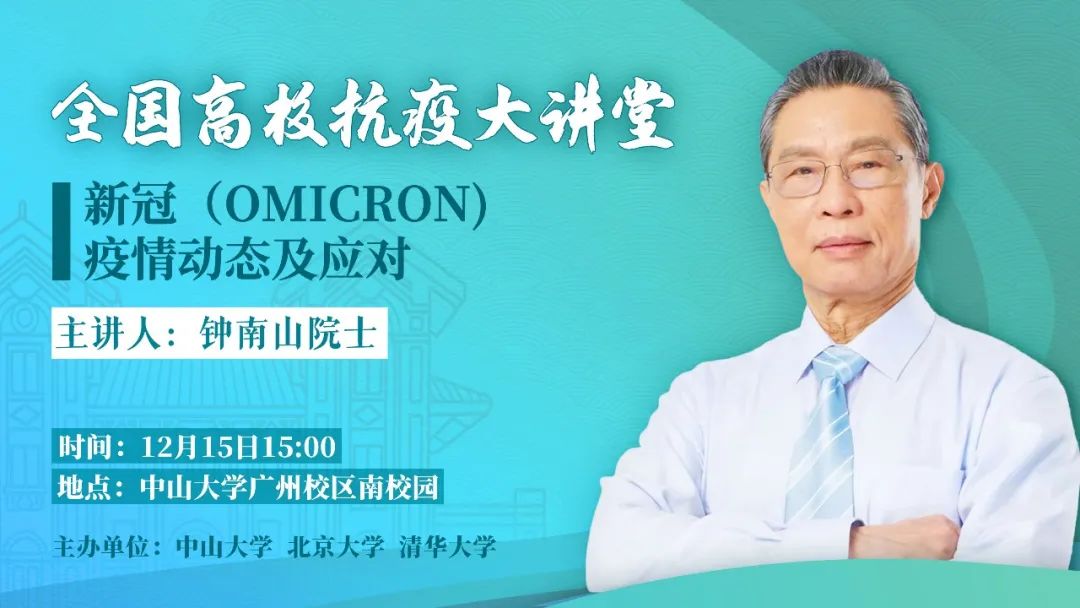 12月15日15时,钟南山院士全国高校抗疫大讲堂开讲
