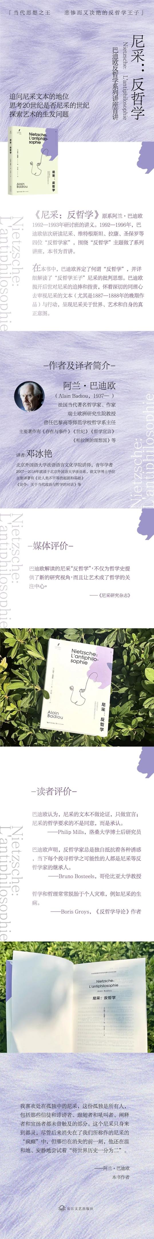 原标题:《阿兰·巴迪欧《尼采:反哲学》丨哲学新书联合书单2022年第11期》