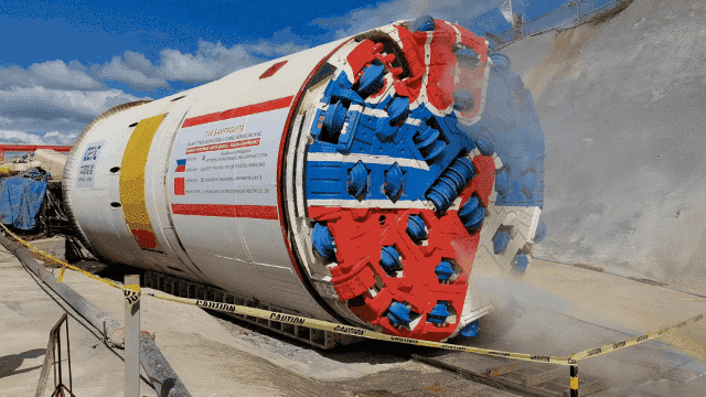 美丽如斯,利器出鞘。为“降服”巍巍高山的硬岩,菲律宾卡利瓦大坝工程“量身定做”我国首台出口至菲律宾的TBM双护盾硬岩掘进机。集机、电、液、光、气等系统于一体的工厂化流水线隧道施工装备,一改传统风枪怒吼、烟尘滚滚的施工场面,实现隧道施工全过程无爆破、无振动的工厂化快速掘进,掘进速度是人工钻爆法的3倍至5倍。