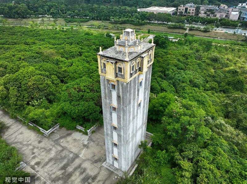 △东莞银瓶山森林公园碉楼航拍。/视觉中国至于东莞排屋,则在客家人的世界里放松许多,从小门探进去,一进一进的土坯木墙隔出厨房、客厅、卧室,仅仅在墙基、门边、门洞敲上砖石,置身于屋内光线昏暗,几乎可以想象过去的他们早早入眠,又早早起身。