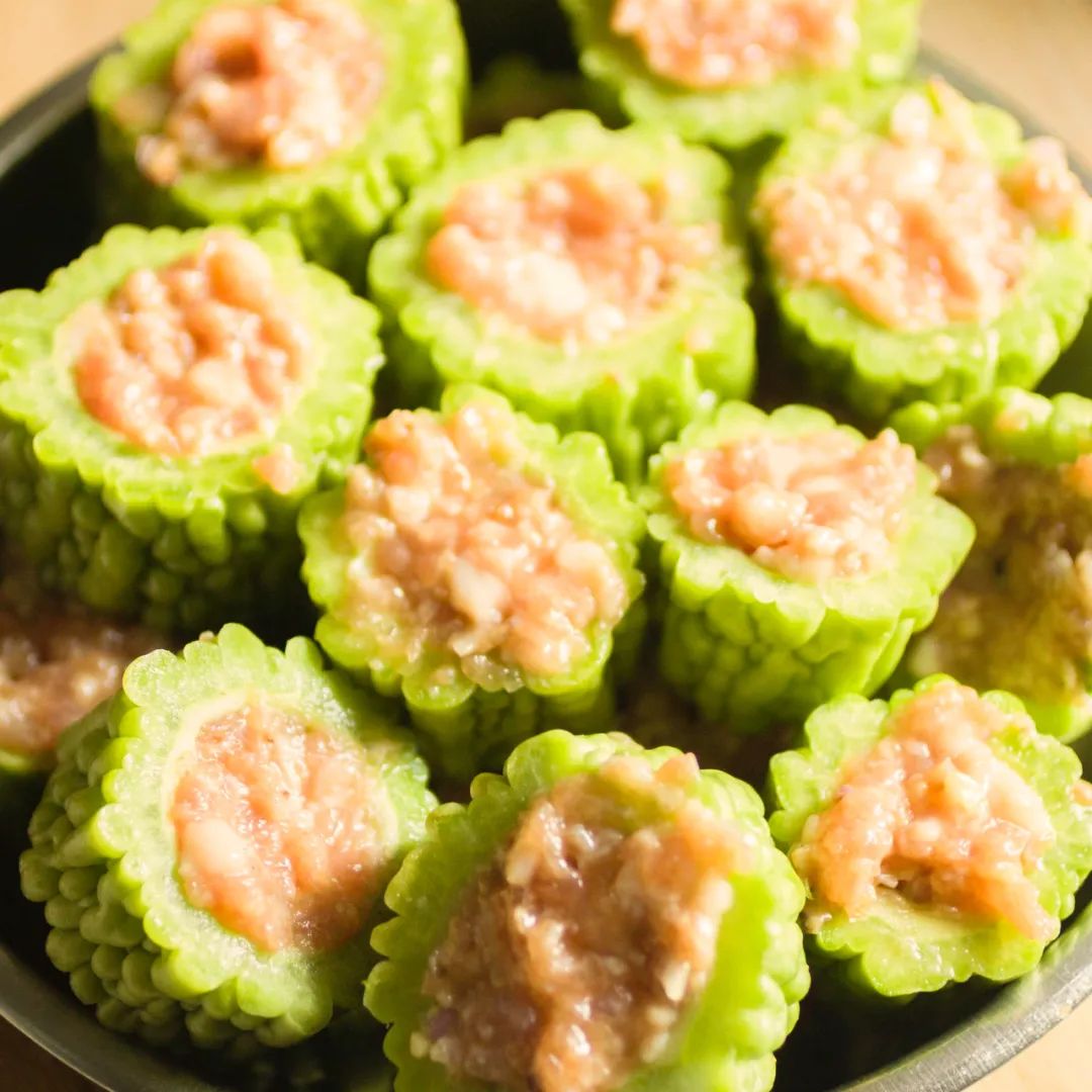又或者来个酿苦瓜,猪肉用力剁碎了,把苦瓜囊剜掉,猪肉塞到苦瓜芯里,冷油热锅煎几分钟便转小火,慢慢炖到肉味从锅沿飘出来,甘苦的瓜肉混着咸香,夏日里吃一碟既消暑又明目,若是要喝汤也容易,苦瓜排骨煲最稳当。