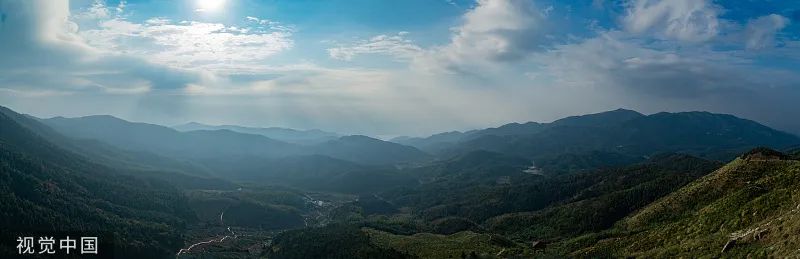 △梅岭山全景。/视觉中国1936年陈毅在韶关写下《梅岭三章》,在巨石密林中拉起漫长的游击战,隐蔽而凌冽的白梅在山峰中临风而开,远远望去像是雪片点点,弓腰从林间穿梭过去却是梅瓣疏疏密密,自古时起,它就染上了文人与勇士的痕迹。