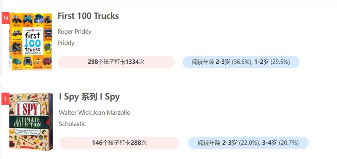 还有《First 100》系列也是被翻烂的程度。学乐出版的《I Spy》系列不但可以增加词汇量还可以锻炼孩子的观察能力。