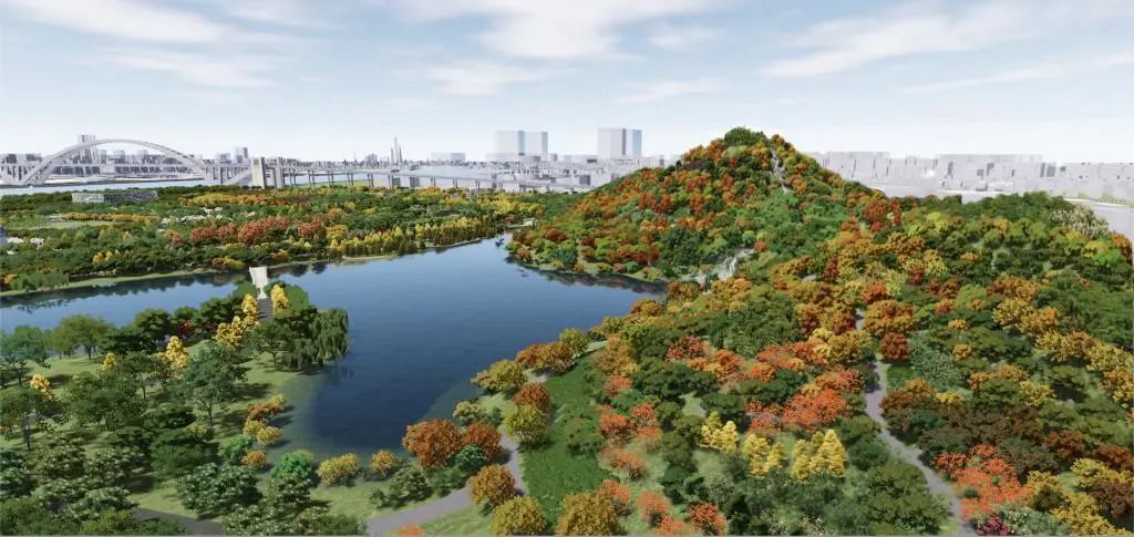 上海世博文化公园位于浦东滨江核心地区,西北部毗邻黄浦江,东至卢浦大桥—长清北路,南至通耀路—龙滨路,占地约2平方公里,将建设成为可以望江、赏湖、爬山的生态自然永续、文化融合创新、市民欢聚共享的世界一流城市中心公园。山顶有观光平台、山间有溪流瀑布