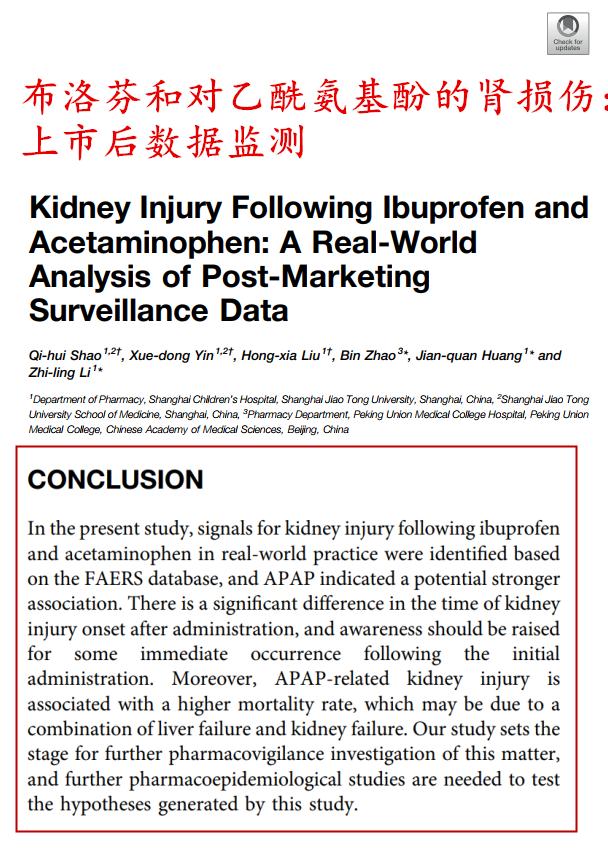 1.Kidney Injury Following Ibuprofen and Acetaminophen: A Real-World Analysis of Post-Marketing Surveillance Data . Frontiers in Pharmacology