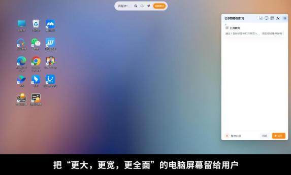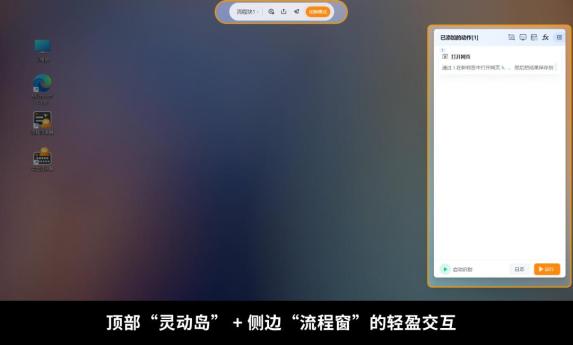 不再需要传统RPA软件与应用软件之间所必须的频繁切换基于对所有屏幕元素的识别和理解,以及顶部“灵动岛” + 侧边“流程窗”的轻盈交互,实现在超自动化的元宇宙中快速打造数字员工