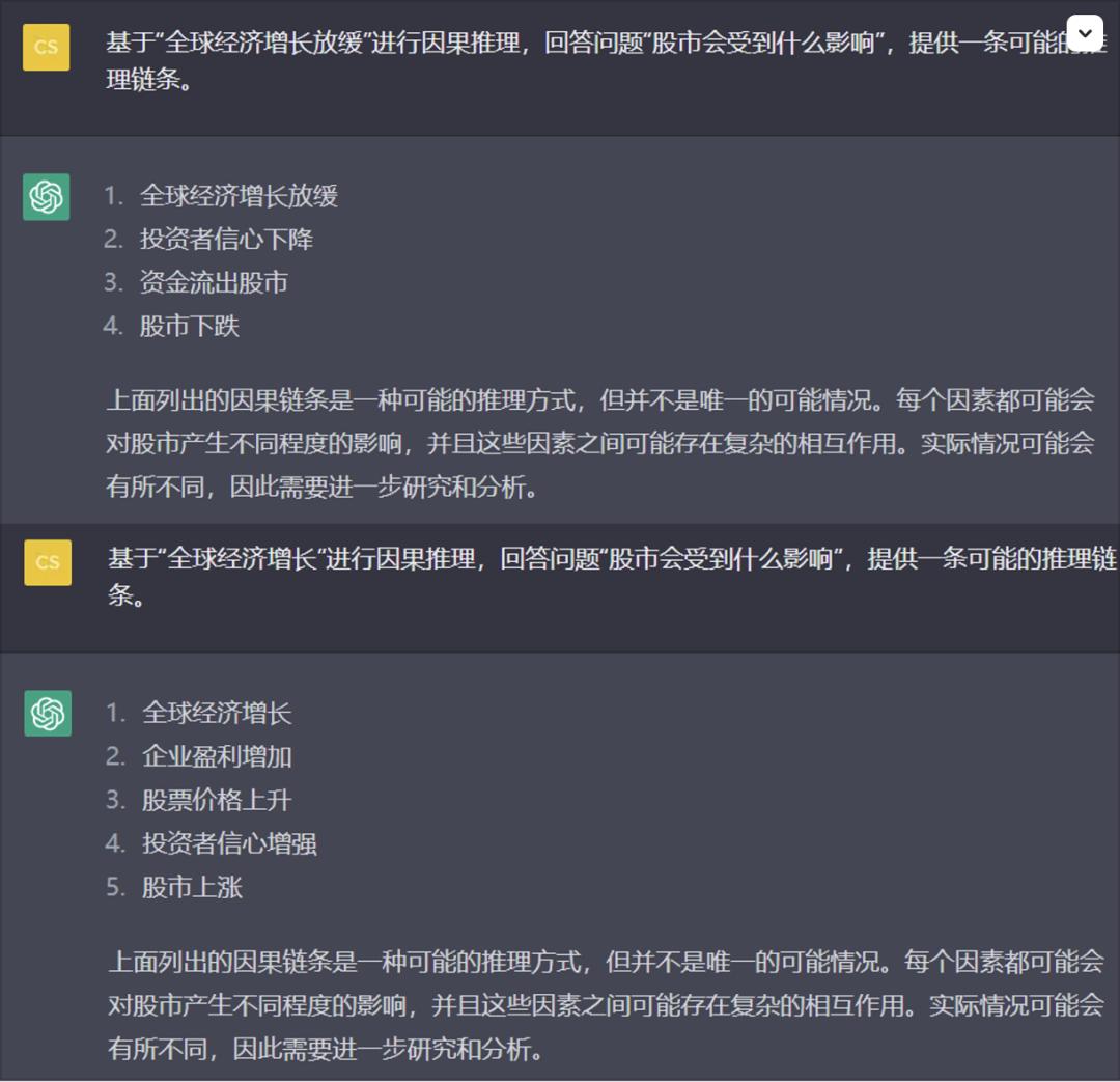 图 9 ChatGPT 针对提问进行多步因果推理的结果高级推理能力:无限推理