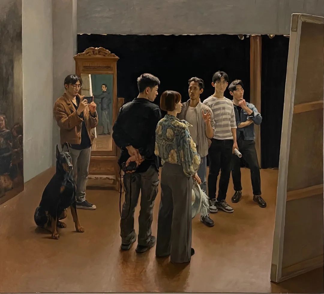今年8月画廊为他举办了从艺以来最大规模的一次个展——在北京的同名个展,展出自2010年以来创作的人物、风景、静物等精选作品约50件。最令人印象深刻的是,他以传统的学院笔法创作多幅肖像作品,富有时代气息,《而立之日的侧面自画像》,人物活灵活现又个性十足,作品本身透露出深厚的古典写实技巧。群像《绘画的寓言》是对名作《宫娥》的致敬,画中几个年轻人在画展现场看展,像展览现场的真实再现。