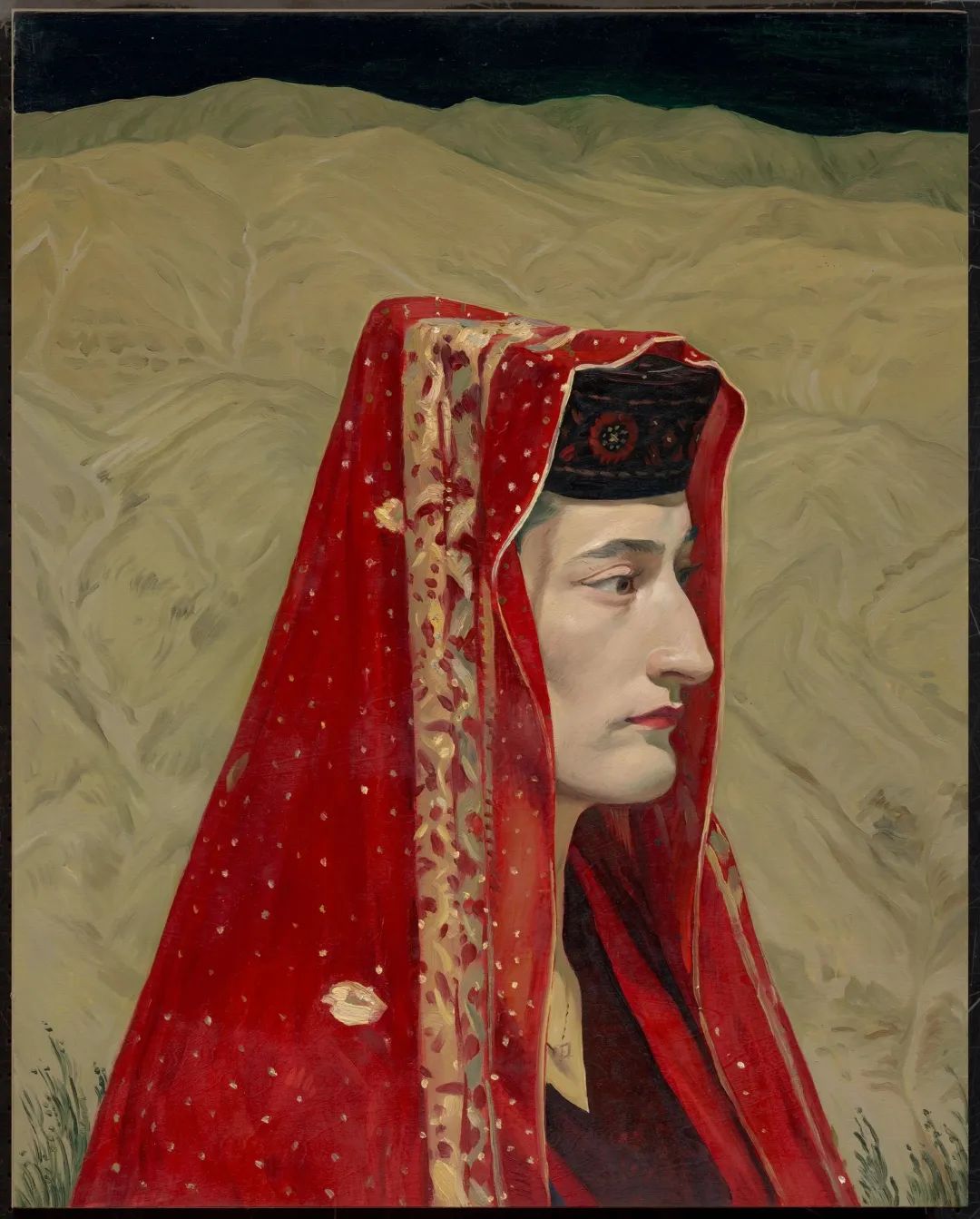 《戴红头纱的女头像》2021年 木板油画 40x50cm而今天年轻一代的创新主义艺术家,跟传统隔绝之后,对自然的发现和作品的愉悦感都很少,多是概念套着概念。在不断充实“文人”气的同时,尤勇更希望以一种“文盲”视角去创作,在这里尤勇的文盲是一种中性的表达,在创作时,你需要暂时丢掉一切你所看到的,认知的,回到本能里:“画家需要具有文盲的气质,对绘画对图像更敏感,让人一看就知道他自己到底在传递什么气息。”