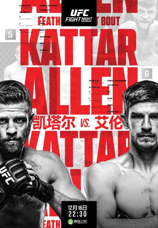 2022年12月16日 22:30,本期青海卫视《龙斗之UFC》带来UFC格斗之夜的比赛,届时英格兰选手阿诺德-艾伦将与加尔文-凯塔尔展开一场羽量级对决!