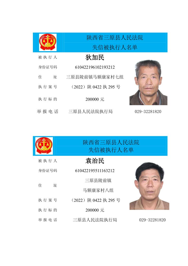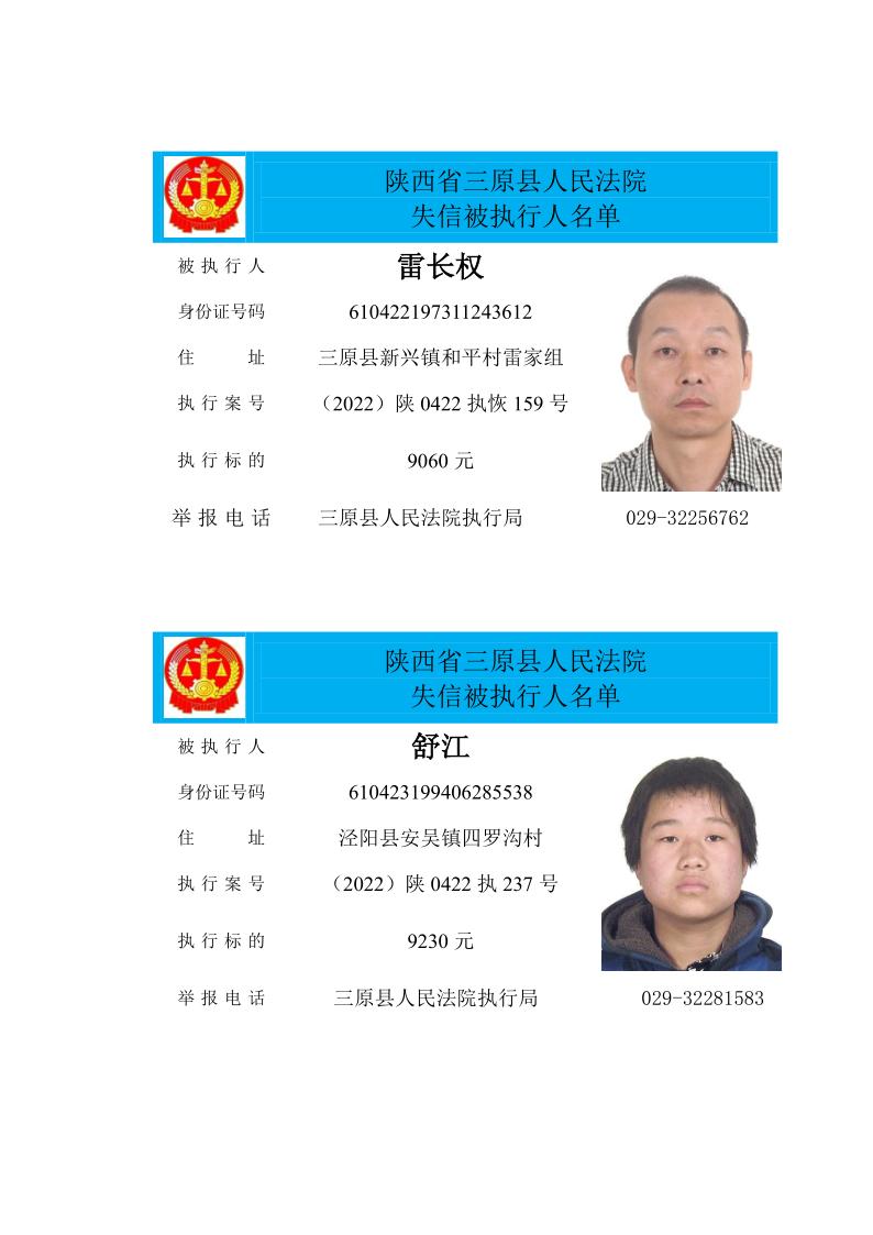 原标题:《三原县人民法院2022年第五期失信人员公布》