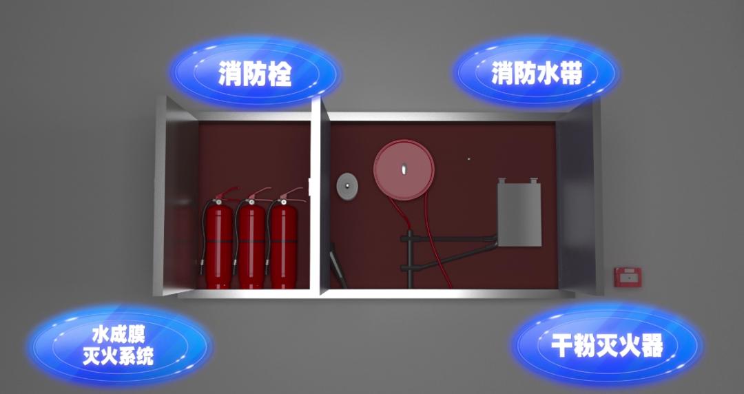 消火栓箱内设有消火栓、消防水带、干粉灭火器、水成膜灭火系统等消防专用工具。当发生火灾时,驾乘人员应按下报警按钮报警,并选择消防工具实施自助灭火。而隧道管理站能利用有线广播系统的人工语音提示对隧道内滞留人员、车辆进行引导疏散。