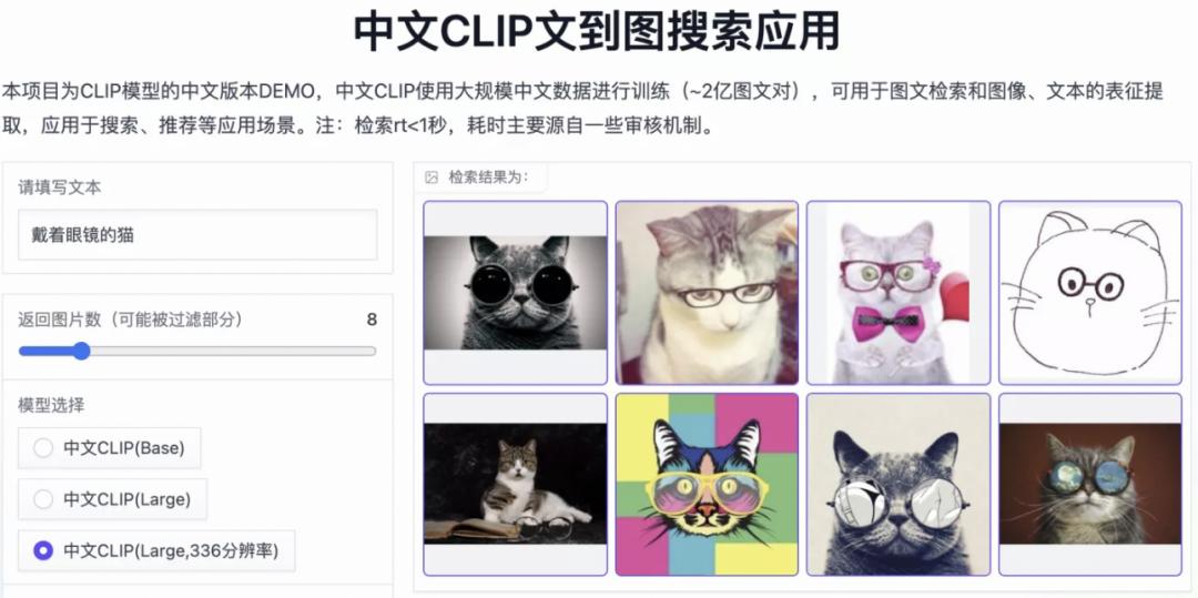 图文检索 demo: https://modelscope.cn/studios/damo/chinese_clip_applications/summary