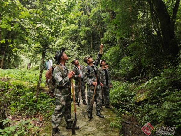 李文荣与其他护林员在巡护山林