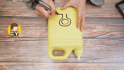 第一步:只需要切割空瓶提手用记号笔画圈的地方。
