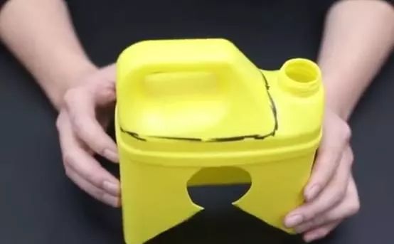 美工刀沿着空瓶凸起的纹路边切割,记得不要切割太靠近瓶口,那里的塑料有点硬,很难割。提手部分比较硬,操作的时候一定要注意安全。
