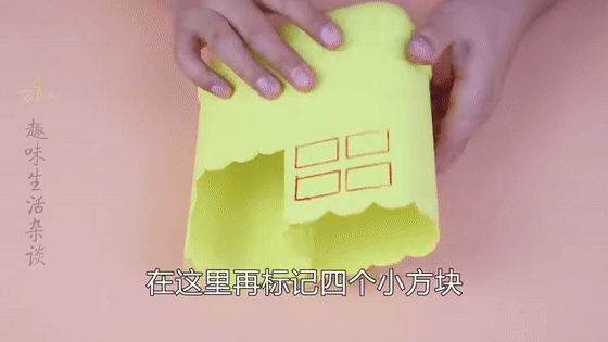 第三步:剪完花边后,在之前折进去的地方画四个小方块,然后切割掉。