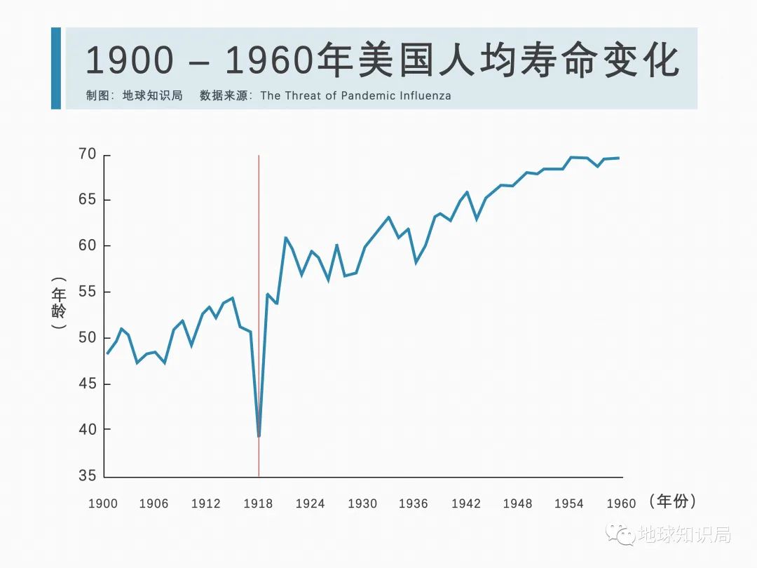 同时,一战叠加大流感对经济、人口带来的打击让战后各国重建异常艰巨,甚至有人认为这是30年代世界经济危机的前奏。以美国为例,大流感让美国人均寿命陡降十余岁▼