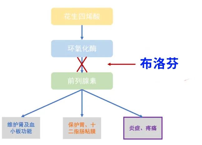 布洛芬的作用就是抑制体内的环氧化酶,而这个环氧化酶是合成前列腺素的关键。