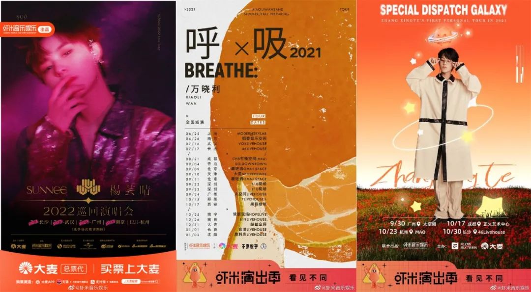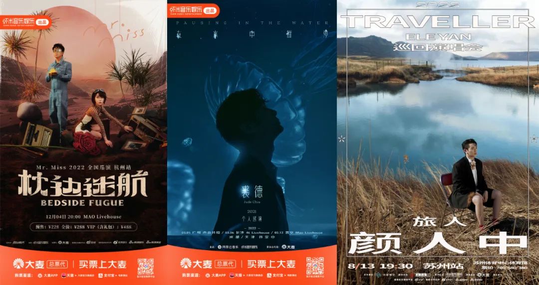 虾米呈现、大麦协力,“内容+技术”的双翼保障,将许多音乐人链接到更大的舞台。以音乐人颜人中为例,他与虾米音乐娱乐合作的首轮巡演从2021年3月开始,持续到6月。在虾米音乐娱乐的布局之下,他选择了十个城市的千人livehouse;到圣诞节时,虾米音乐娱乐则为他选择了广州中山纪念堂2500+人的剧场,开票即售罄。再到2022年8月,场馆又进一步将演唱会升级到了5000人规模的苏州体育中心体育馆,开票10分钟全部售罄。
