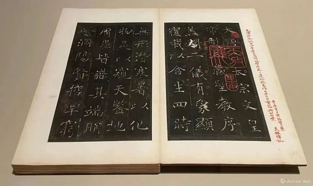 明《雁塔三藏圣教序拓本》 高33.2厘米 宽18厘米 帖芯高25.4厘米 宽13.3厘米 徐森玉1965年捐赠这些捐赠者中,有很大一部分人本身就是文博研究者。如博物馆事业先驱,曾负责华东地区文物保护管理的郑振铎于1956年将汉《人物画像砖》赠于上博。之所以捐赠,他说,“我个人收藏这些陶俑,无甚用处。而各博物院......则极为需要。”再如徐森玉,他经历了上海博物馆的筹划建立过程,是一位文博领域大家,毕生都在从事文博工作。其自身也是中国著名的文物鉴定家、金石学家、 版本学家、目录学家、文献学家,与各个地区的文物收藏家都有广泛联系。1950年,他将其收藏的3件陶瓷等藏品捐赠给上海市文物管理委员会,后为上海博物馆所收藏。之后又分别在1964年、1965年和1966年将其收藏的书画、古籍、拓片等6件藏品捐赠给上海博物馆......