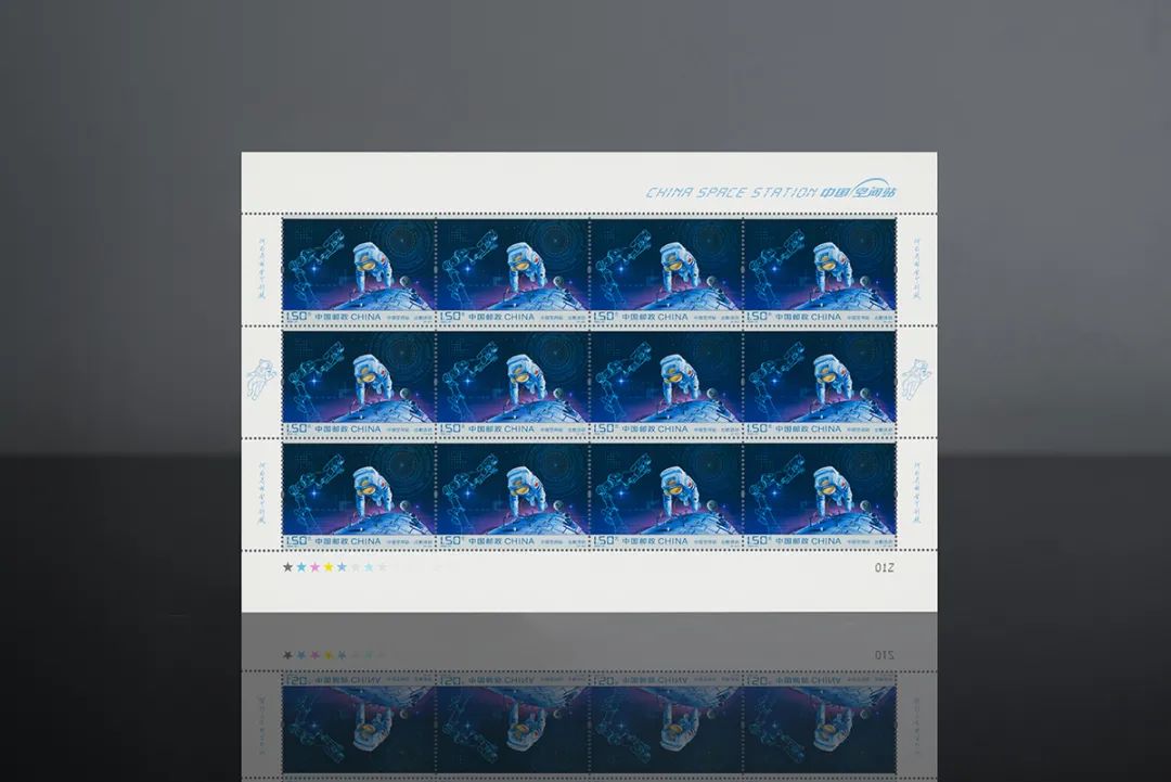 中国邮政定于2022年12月25日发行《中国空间站》纪念邮票一套4枚。邮票表现内容为:(1)天地往返;(2)空间科学;(3)出舱活动;(4)太空家园。全套邮票面值5.40元。邮票计划发行数量为套票800万套,版式二110万版。